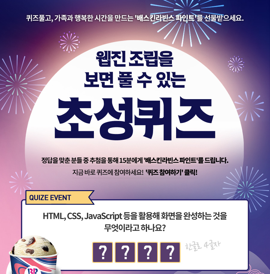- 당첨자 선물: 배스킨라빈스 파인트(15명)